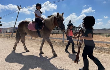 Pour les enfants de 3 à 7 ans, ce sont des cours pour découvrir l'univers magique des poneys et apprendre les bases de la sécurité, des soins et de la pratique montée.
